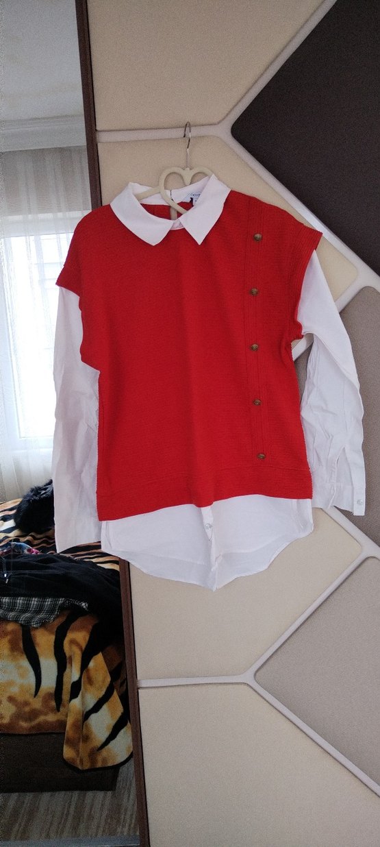 Düğmeli Kırmızı Hamile Bluzu, Yakalı, Kolsuz