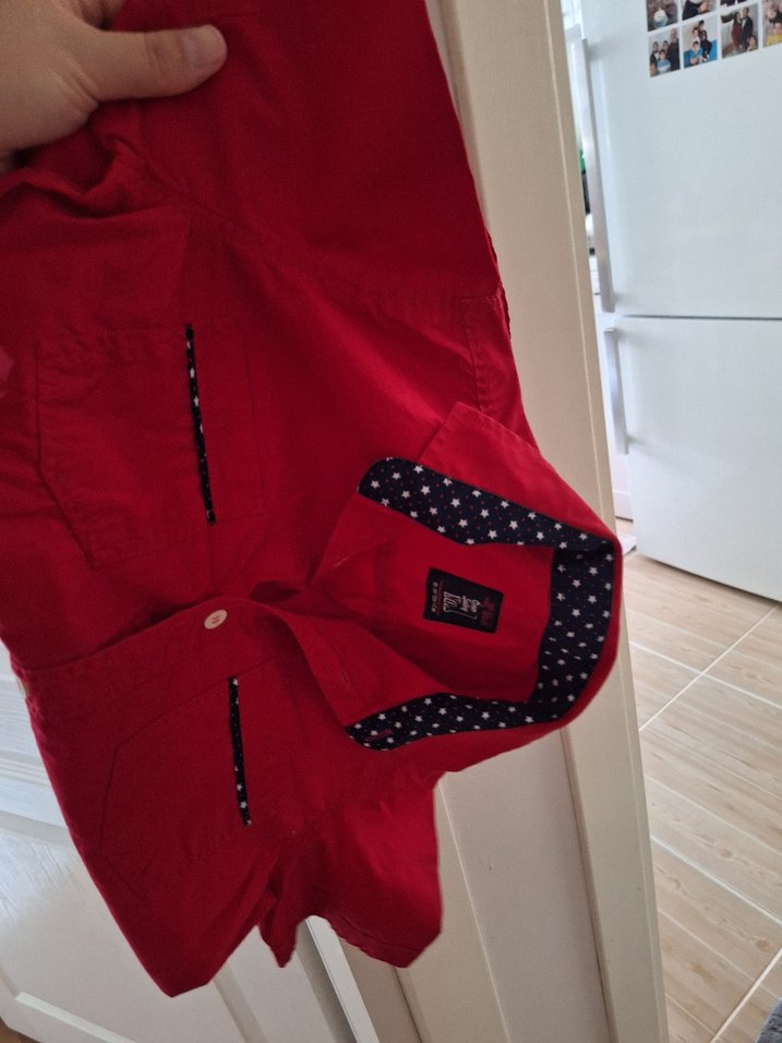 Düğmeli, kırmızı, hamileler için tasarlanmış midi boy ceket. Notlu yaka ve uzun kolludur, parlak dokusu sokak stiline uygundur.