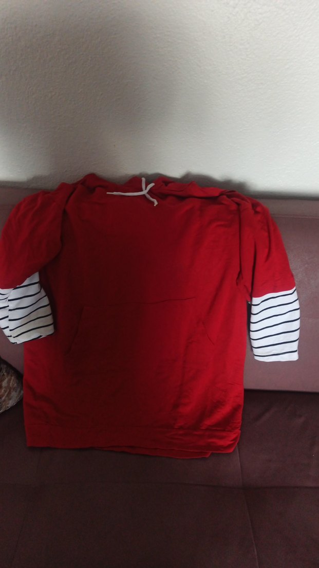 Düğmeli detaylı, uzun kollu, bisiklet yaka kırmızı hamile sweatshirt. Rahat kesimi ve çizgili manşetleriyle günlük kullanıma uygun.