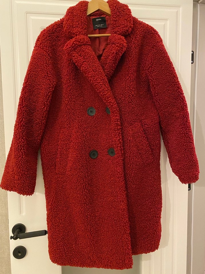 Düğmeli Kırmızı Kadın Bershka Kürk Kaban