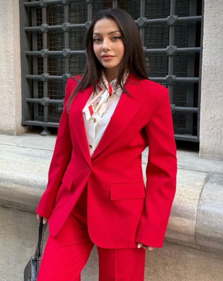Düğmeli Kırmızı Kadın Blazer Ceket