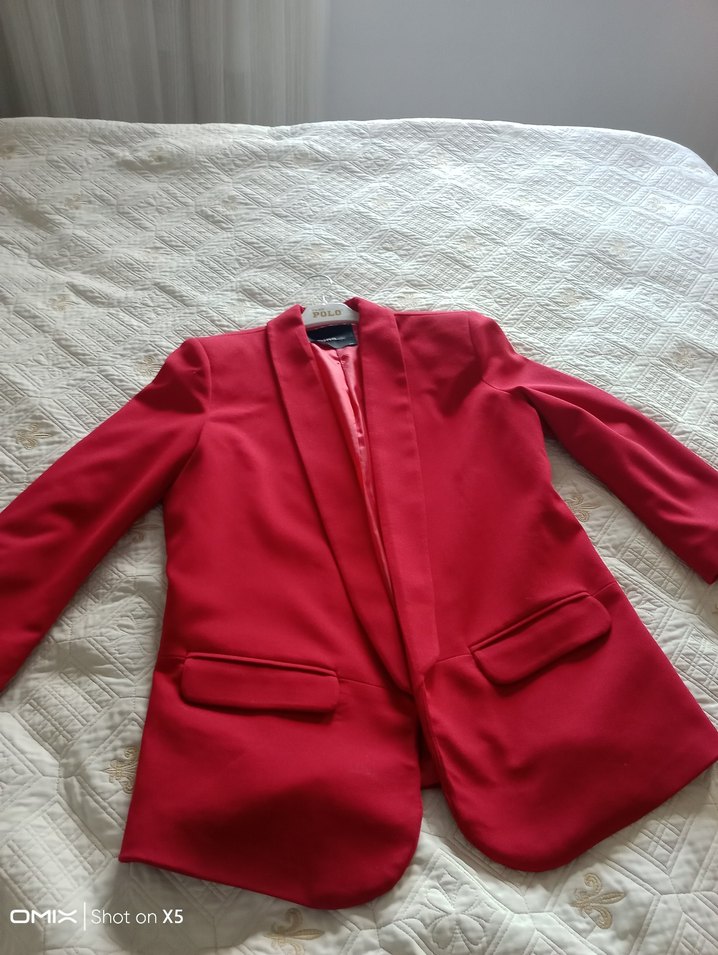 Düğmeli ve kırmızı renkteki kadın blazer ceket, normal uzunlukta ve regular fit kesime sahiptir. Uzun kollu, suni kumaştan üretilmiştir ve ofis ile günlük kullanıma uygundur. ✨vatkalı