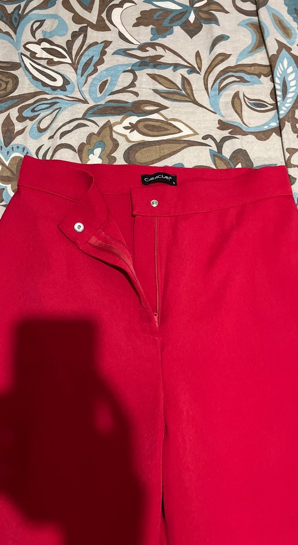 Düğmeli Kırmızı Kadın Kumaş Pantolon