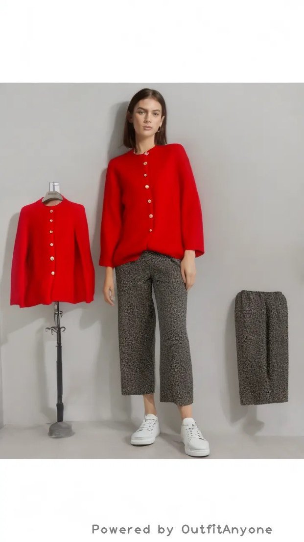 Düğmeli, yuvarlak yaka, uzun kollu kırmızı triko hırka. Normal boy ve regular fit, gündelik kullanıma uygun sade tasarım.