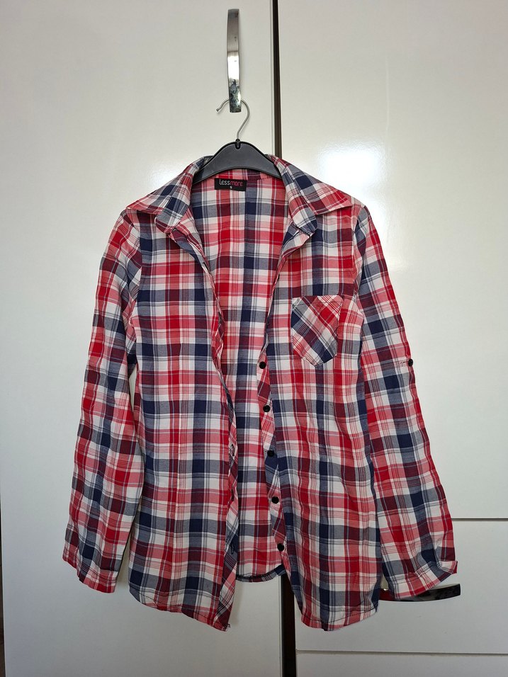 Düğmeli, uzun kollu, kırmızı ve beyaz kareli bol kesim özellikleriyle günlük rahat kullanım için uygundur.