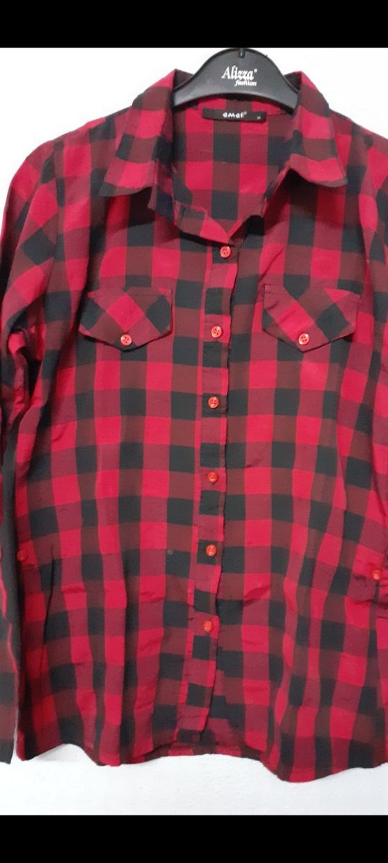 Düğmeli Kırmızı Kareli oduncu Kadın Gömlek