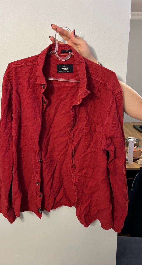 Düğmeli Kırmızı Keten Kadın Gömlek
