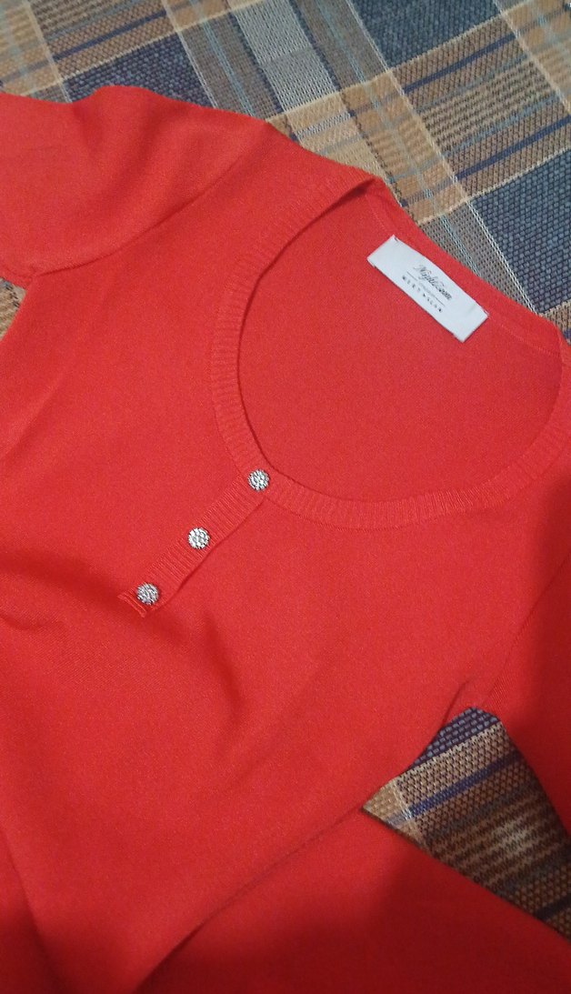 Düğmeli, yuvarlak yaka, kısa kollu kırmızı triko elbise.Vücuda oturan kesimi ve normal boyu ile günlük kullanıma uygundur. MERT ASLAN Orijinal.Sifir sayılır