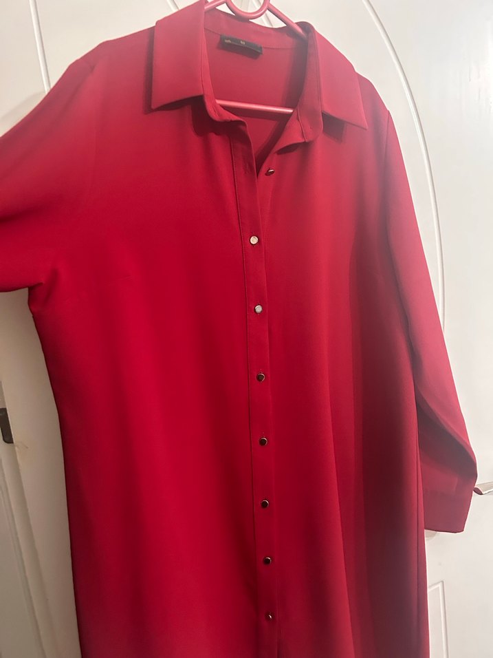 Düğmeli, yakalı ve kısa kollu kırmızı tunik