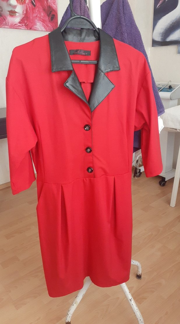 Düğmeli Kırmızı Midi Elbise Siyah deri Yaka 40 beden