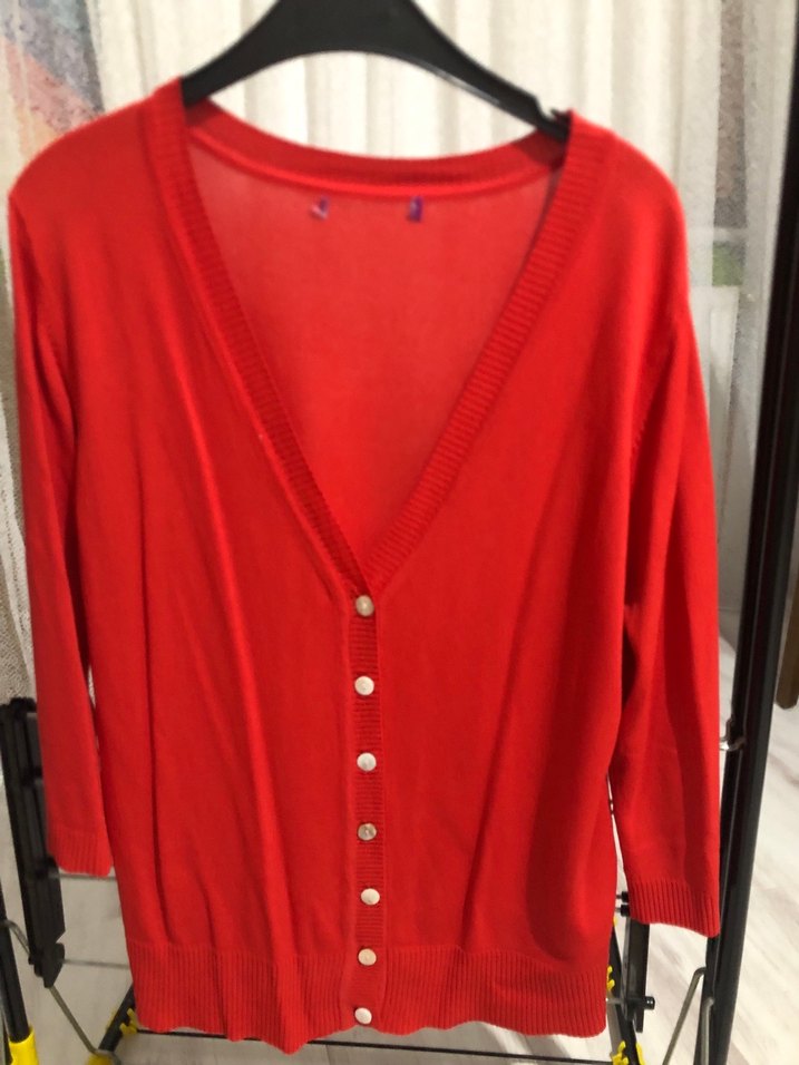 Düğmeli Kırmızı Midi Kadın Hırka