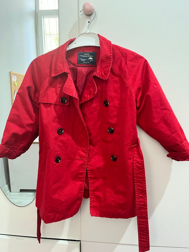 Düğmeli, parlak kırmızıtrençkot, keskin yaka ve uzun kollu tasarıma sahiptir. Midi boyda, sentetik kumaştan yapılmış, desen içermeyen günlük stil trençkot.Orjinal Zaradır . 4-7 yaş rahat giyer