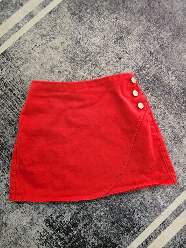 Düğmeli Kırmızı Mini Etek