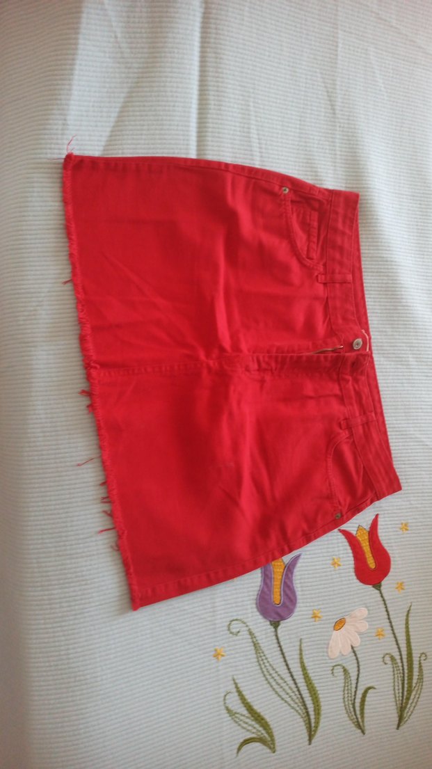 Düğmeli Kırmızı Mini Etek