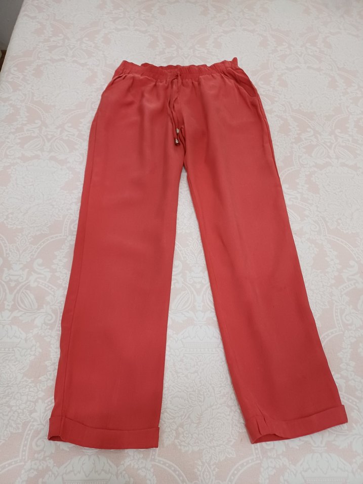 Düğmeli Kırmızı Rahat Kesim Kadın Kumaş Pantolon