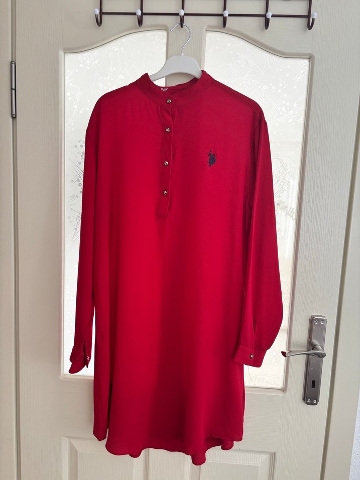 Düğmeli Kırmızı Uzun Kollu Tunik