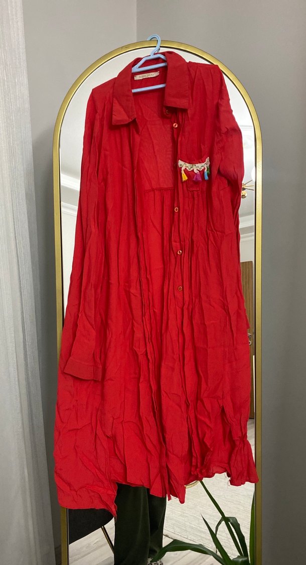 Düğmeli Kırmızı Uzun Tunik
