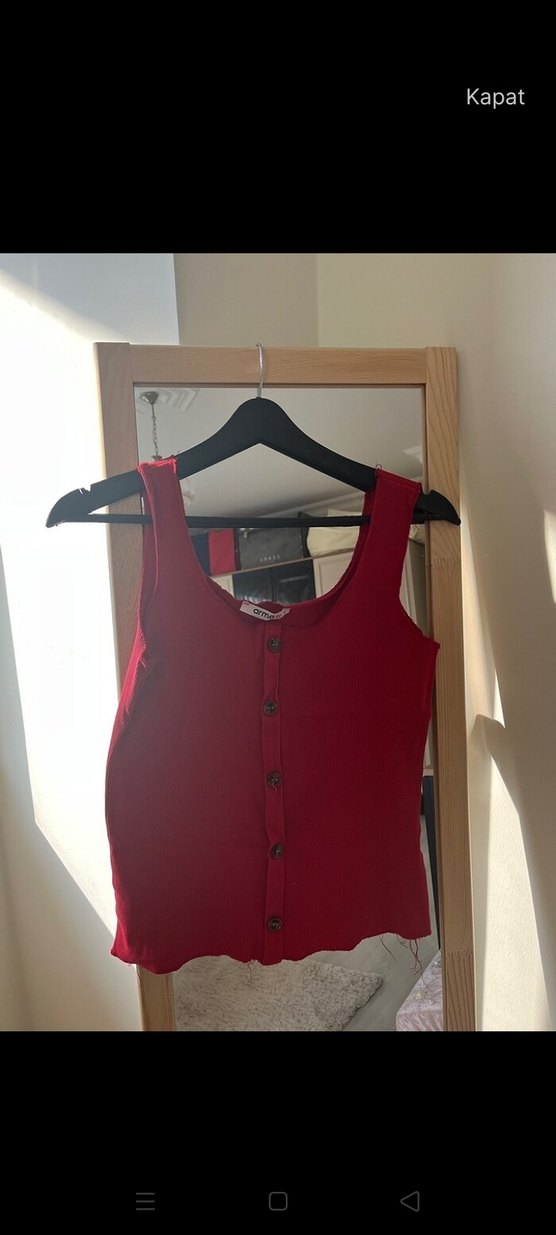Düğmeli, V yakalı, fitted kırmızı kadın atlet. Kolsuz, normal midi boyda, sentetik kumaştan, günlük sokak stiline uygun.
