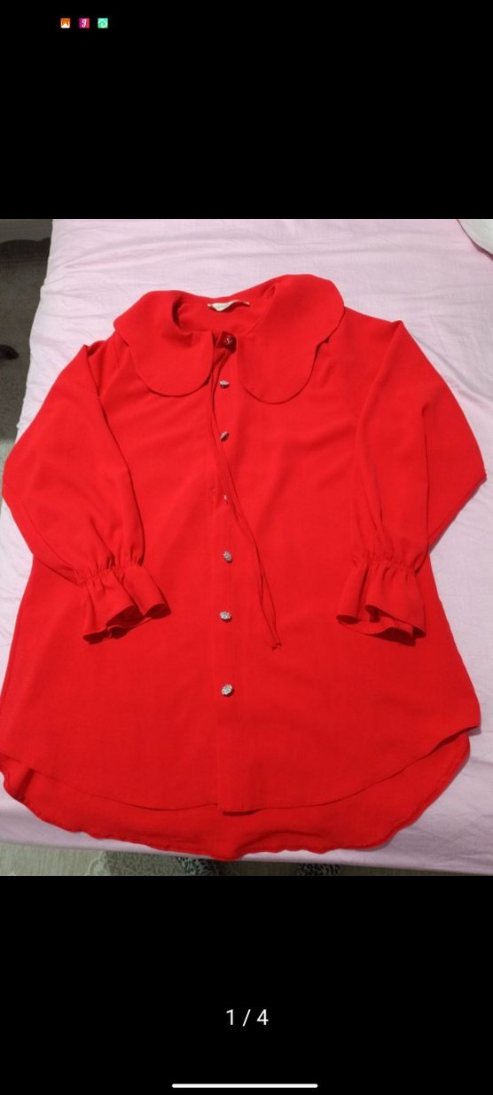 Düğmeli, uzun kollu kırmızı gömlek.1 defa giydim yeniden farksiz
