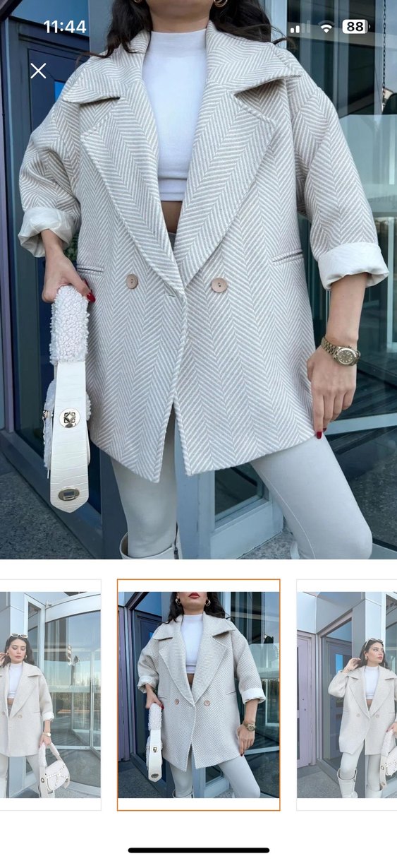 Beyaz renginde, düğmeli ve kısa kesim kadın blazer ceket. Uzun kollu, regular fit ve yılan derisi desenli, sentetik kumaştan üretilmiştir. Günlük kullanıma uygundur. https://ty.gl/rhyjurlvzxwji (linki budur) Aldım fakat hiç kullanmadım sadece yıkadım bi tık dar oldu bana