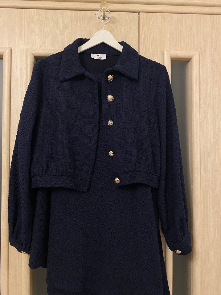 Düğmeli Kısa ceketli tüvit etekli takım - Görsel 1