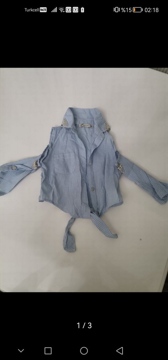 Düğmeli, Kısa Denim Kız cocuk Gömlek