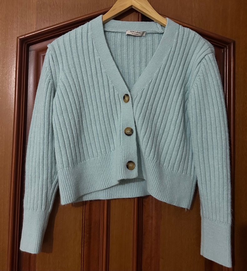 Mavi rengi kadın hırka boyu 43 cm omuz 38 cm göğüs 47 cm kol boyu 52 cm