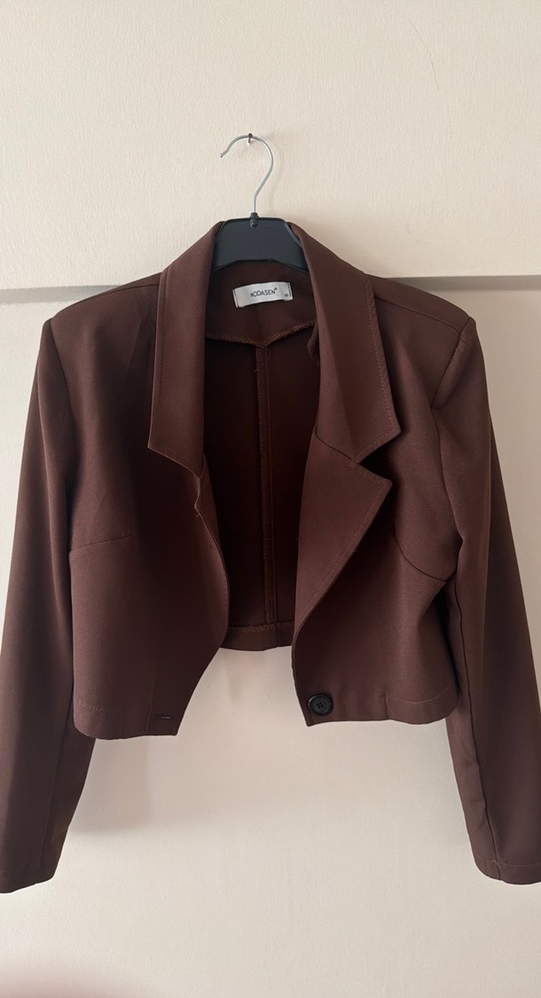 Düğmeli Kısa Kahverengi Kadın Blazer
