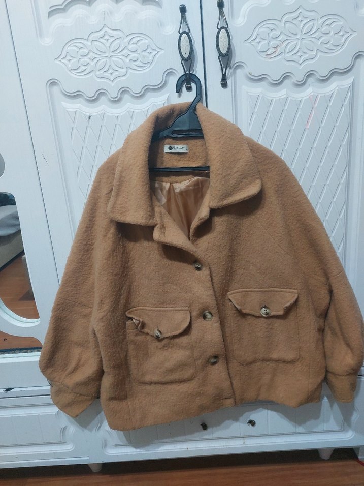 Düğmeli önü ve yaka detaylı, kısa ve bol kesim kadın kabanı. Yumuşak ve sıcak kumaştan, uzun kollu ve cep detaylıdır. Günlük kullanıma uygundur.