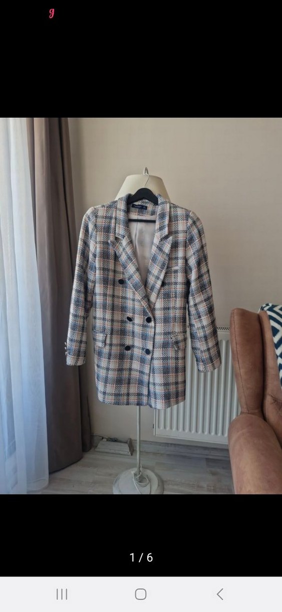 Gri ekose desenli, kısa kesim, düğmeli kadın blazer. Uzun kollu ve regular fit, sentetik kumaştan üretilmiştir, günlük kullanıma uygundur. 38 40 bedene kadar Uygundur dokuma güzel bir kumaşı olan severek kullandığım bir ürün