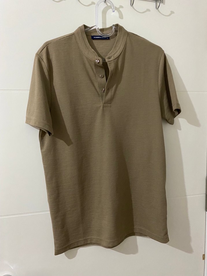 Düğmeli Kısa Kollu Bej Tişört