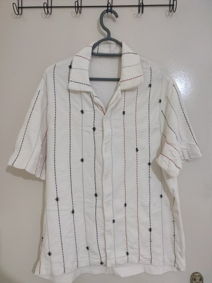 Düğmeli ön kısmı ve yakalı kısa kollu, havlu kumaştan yapılmış erkek gömleği. İnce çizgiler ve küçük desenlerle trend rahat tarz sağlar.
