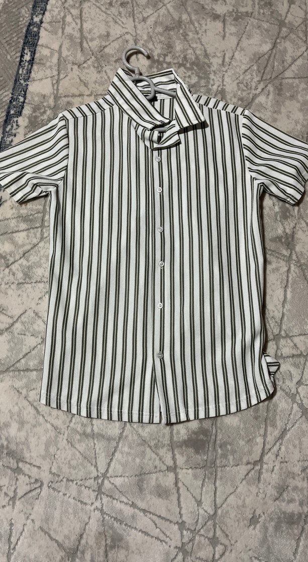 Kısa kollu, düğmeli ve yakalı erkek gömleği. Beyaz ve gri çizgili, normal kesim ve sentetik kumaştan üretilmiştir. Günlük kullanıma uygundur.