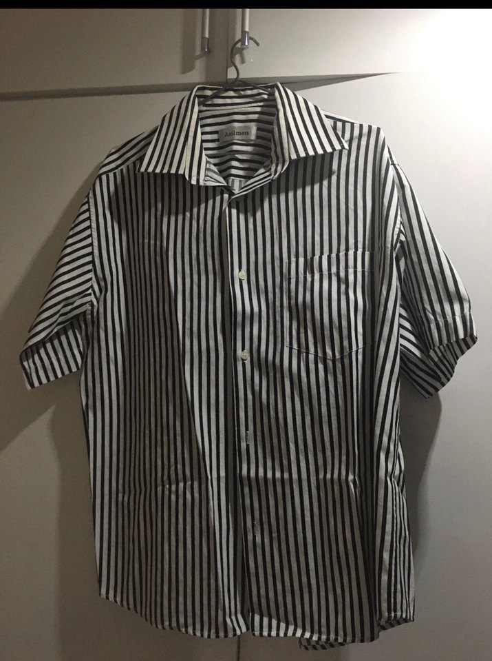 Düğmeli önü ve kısa kollarıyla erkek gömleği, regular fit ve çizgili desene sahip. Sentetik kumaştan, koyu gri tonlarında, günlük sokak stiline uygun.