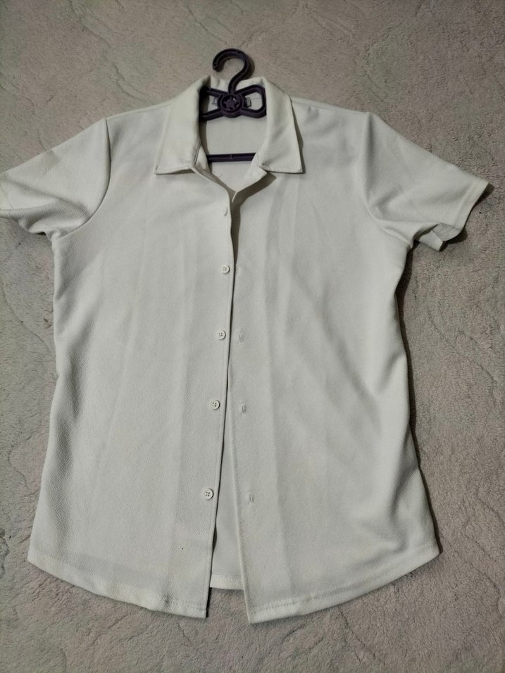 Beyaz erkek gömlek, kısa kollu, yakalı ve düğmeli ön tasarıma sahiptir. Normal kesim ve sentetik kumaştan üretilmiştir, ofis ve günlük kullanım için uygundur.