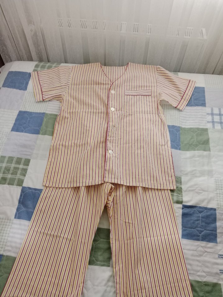 Düğmeli, kısa kollu erkek pijama takımı, tekne yaka, normal kesim ve orta boy. Çok renkli pastel çizgili deseniyle sade ve rahat bir tasarım sunar.