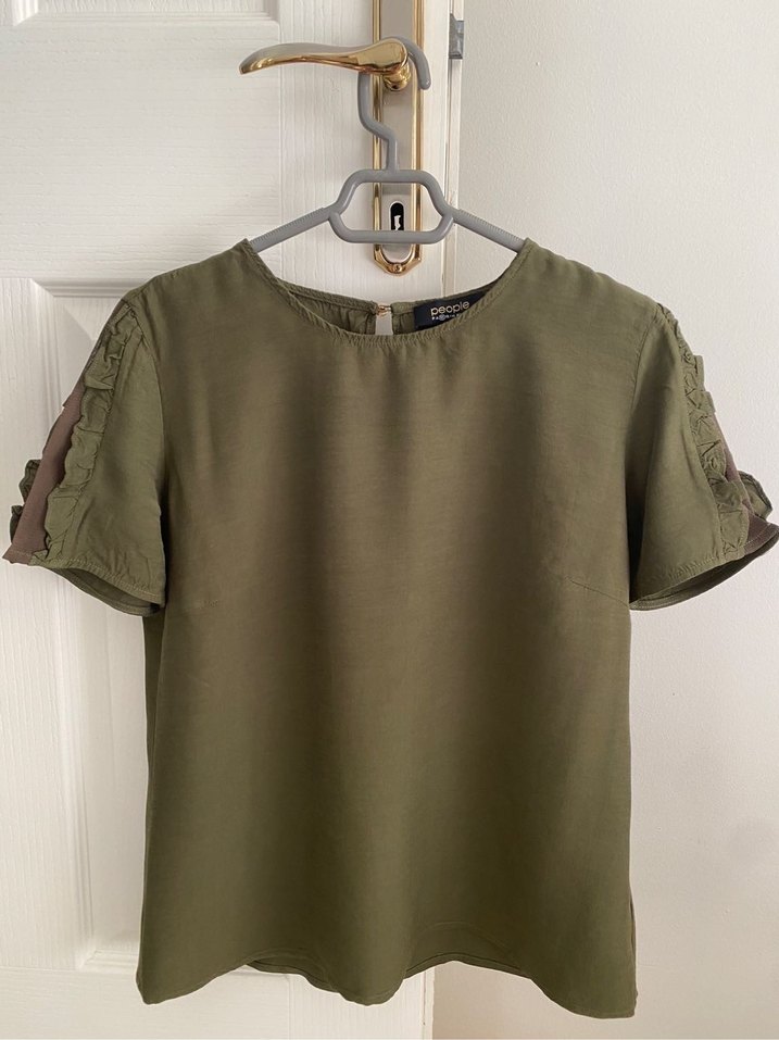 People by fabrika. Haki renkli hiç giyilmemiş, kol detaylı kadın t-shirt.