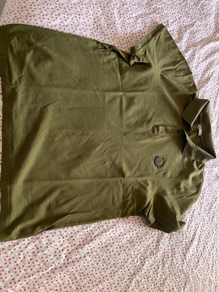 Düğmeli, yakalı ve kısa kollu haki polo tişört. Pürüzsüz sentetik kumaştan, dar kesim ve günlük rahat kullanıma uygun. Orijinal marka