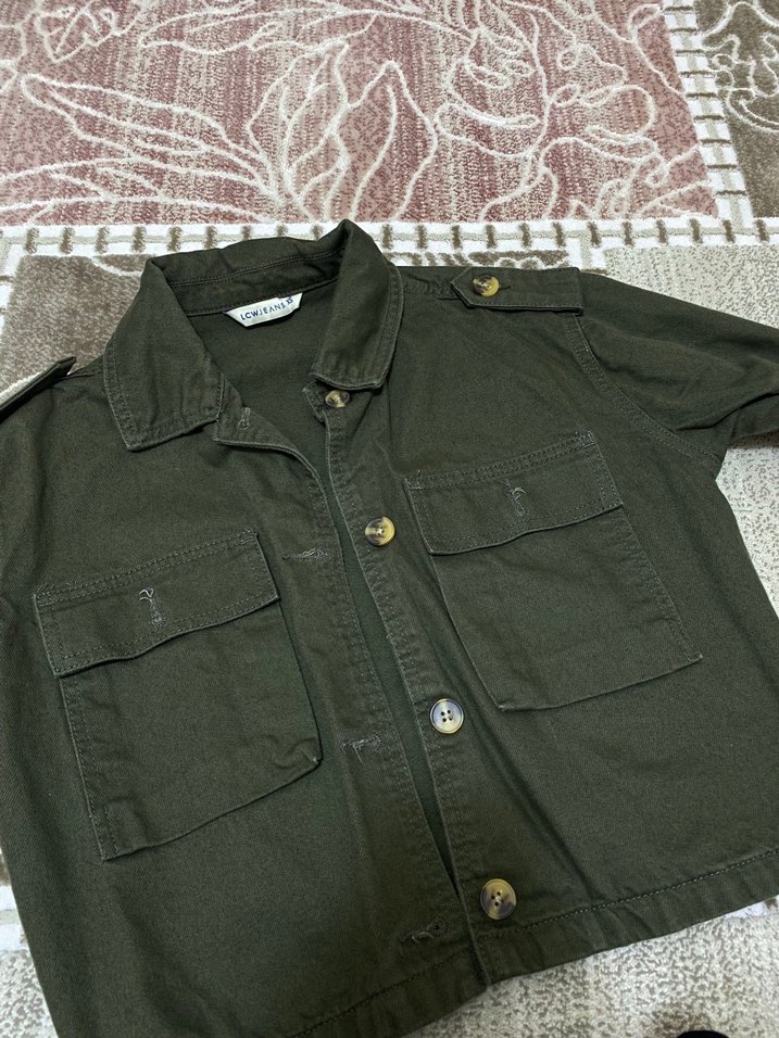 Düğmeli Kısa Kollu Kadın Haki Gömlek