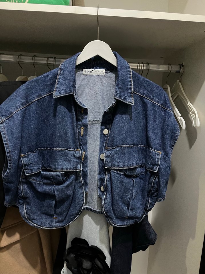 Bu kadın kot ceket, düğmeli önü, kısa kolları ve kesik yaka detayına sahiptir. Bol kesim ve midi boyuyla gündelik sokak stiline uygundur. Cepleri geniştir.