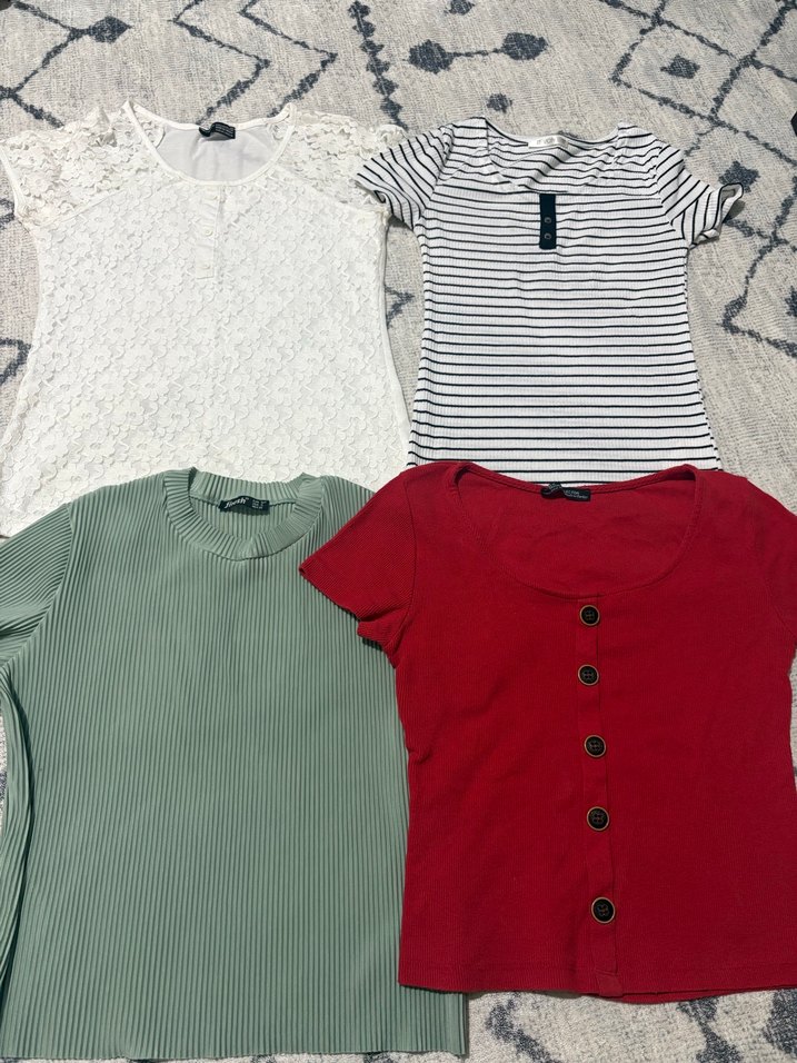Pamuk kumaştan üretilmiş, kısa kollu, düğmeli ve dar kesim kadın tişörtü. Sokak tarzına uygun, rahat ve günlük kullanım için ideal.36 bedene olur max 55 kiloya kadar