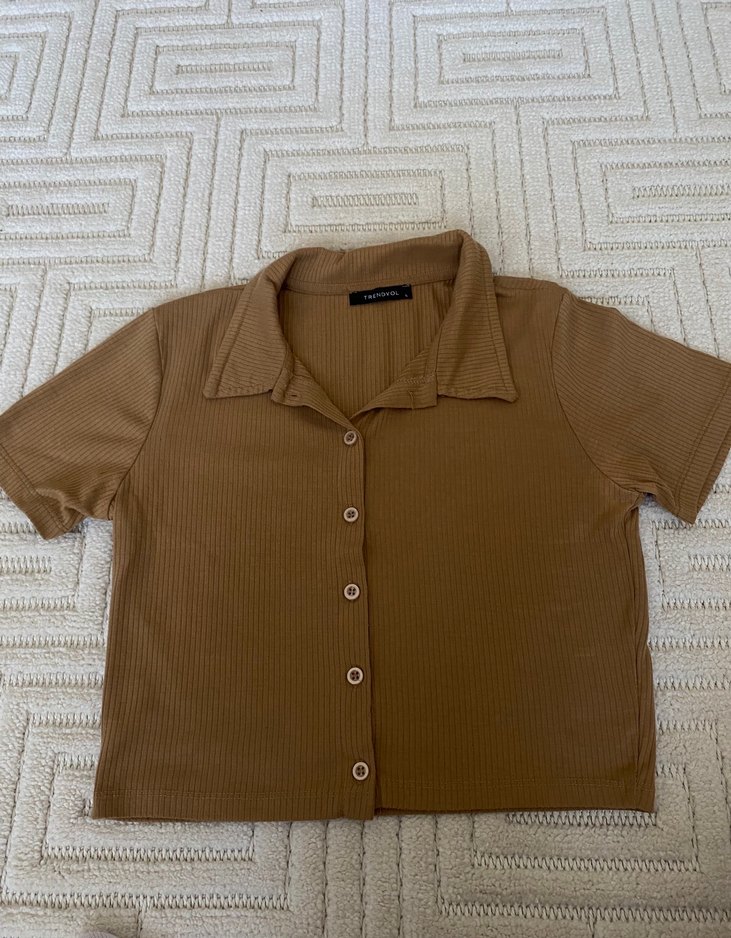 Düğmeli Kısa Kollu Kahverengi Gömlek