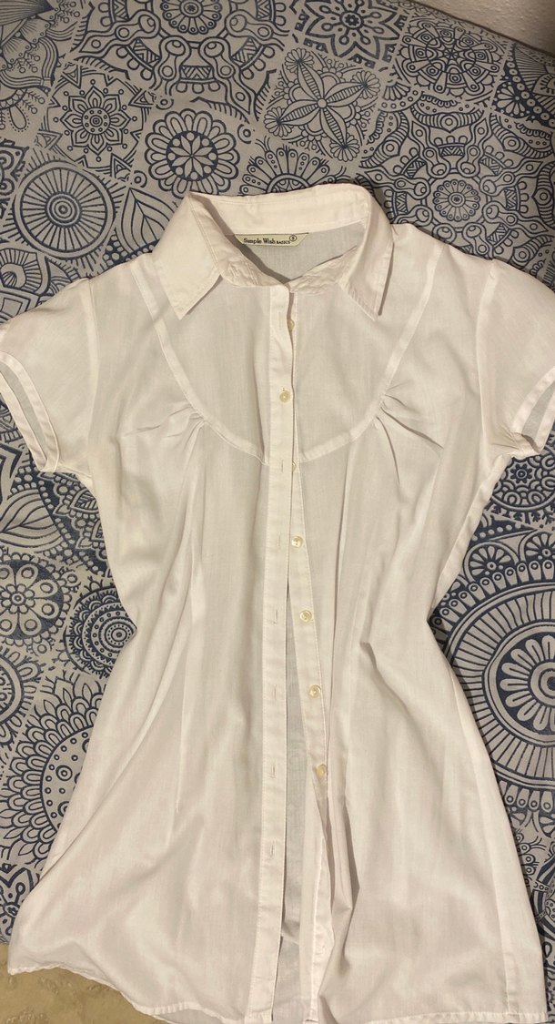 Düğmeli, kısa kollu, keten kumaştan yapılmış beyaz gömlek, midi boyda ve dar kesimdir, günlük sokak stili için uygundur. giyilmedi
