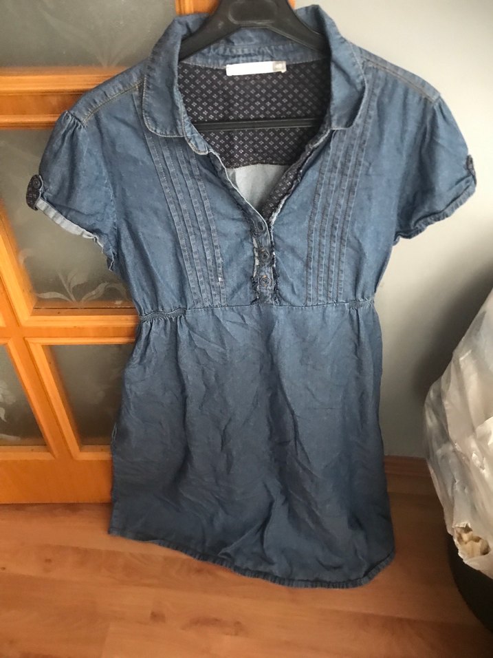 Bol kesim, düğmeli, kısa kollu kot elbise. Yaka detaylı ve midi boyda, gündelik kullanıma uygun. Ürün sağlam ve defosuzdur defacto marka 40 beden rengi ilk fotolarda biraz mat çıkmış ama orjinal kot rengidir ve son görselde mevcuttur