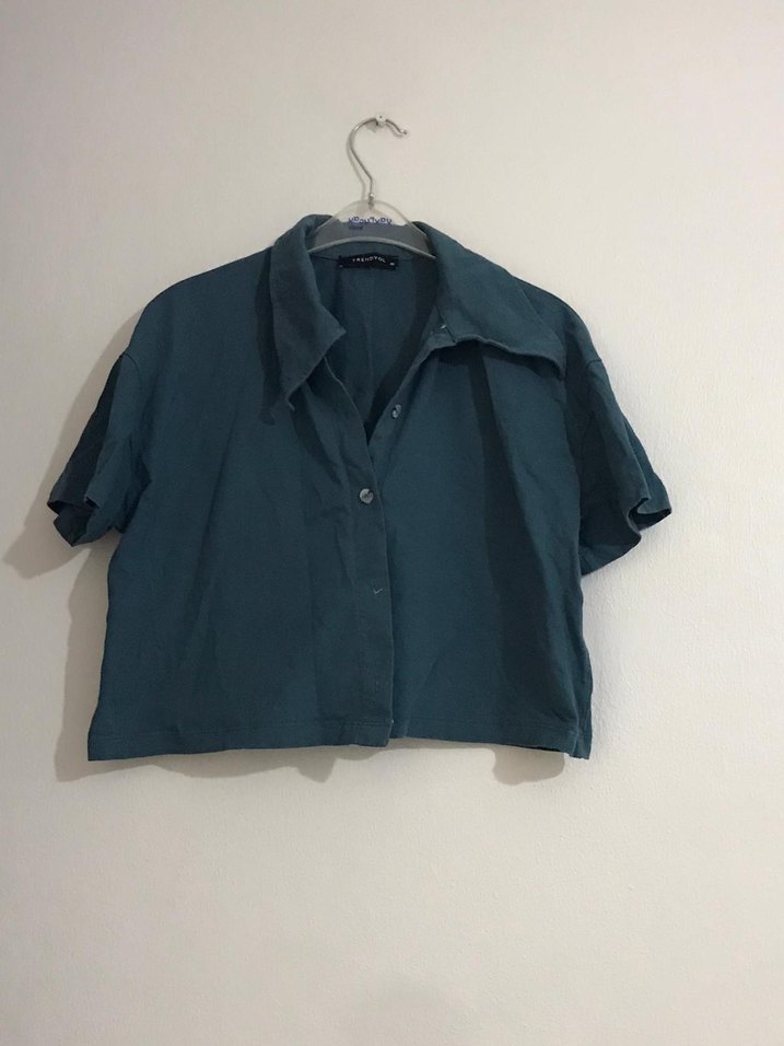 Düğmeli, kısa kollu, yakalı mavi keten gömlek. Salaş kesimi ve minimal desenleriyle günlük kullanıma uygundur.