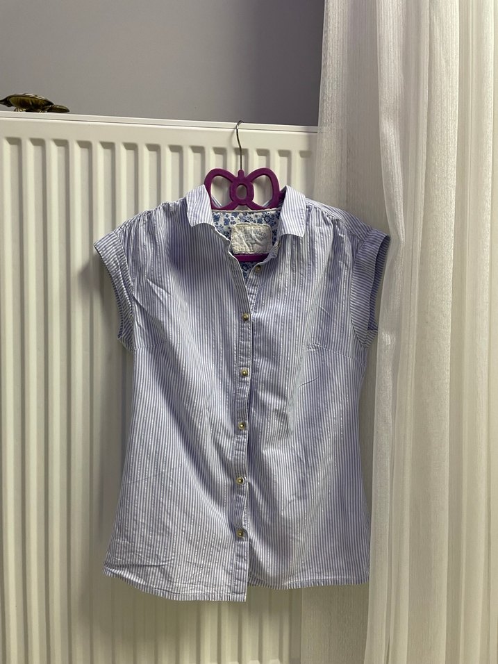 Pamuklu kumaştan, kısa kollu, düğmeli ve yakalı kadın gömleği. Rahat kesimi ve gündelik tarzıyla her gün kullanıma uygundur.