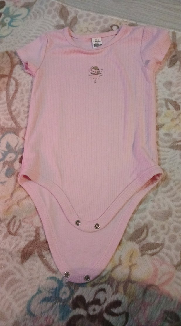 Pastel pembe, kısa kollu, yuvarlak yakalı bebek body. Düğmeli kapanışları ile kolay giyilir. Küçük nakış detaylı, yumuşak ve rahat kumaş. defosu yok yeni gibi çok az giyild.iade kabul edilmeyecek