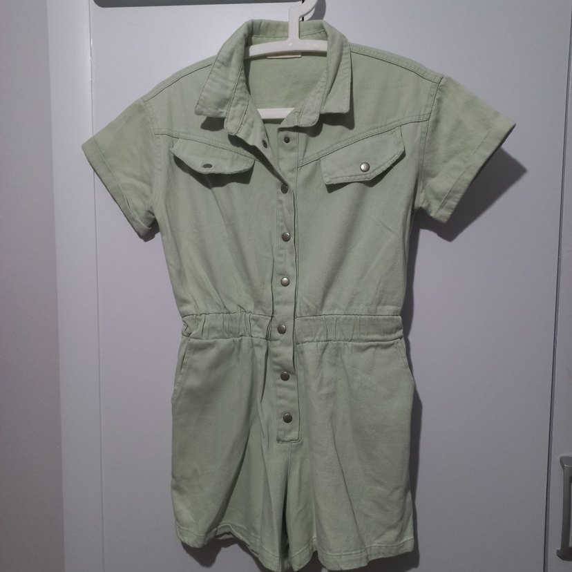 Düğmeli Kısa Kollu su yesili Kadın Tulum