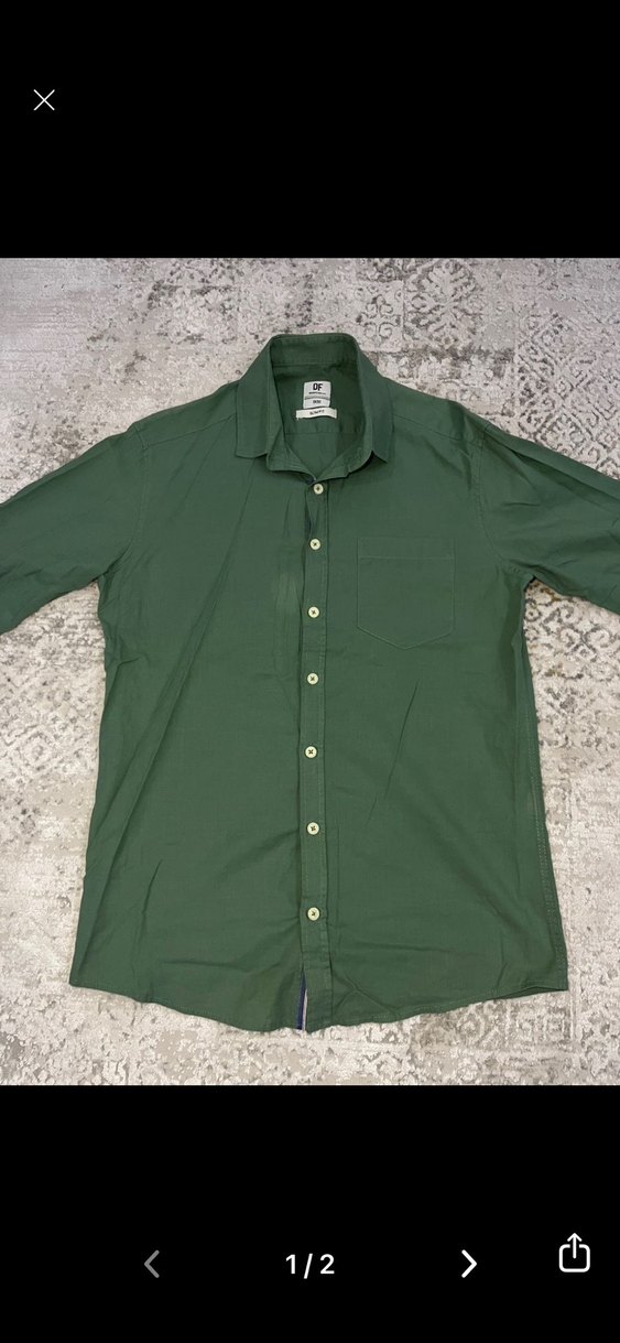Ufak bir lekesi var ama geçer diye düşünüyorum. Yeşil renkli, düğmeli, kısa kollu ve yakalı erkek gömleği. Sentetik kumaştan, parlak görünümlü ve normal kesim. Günlük rahat kullanıma uygun.