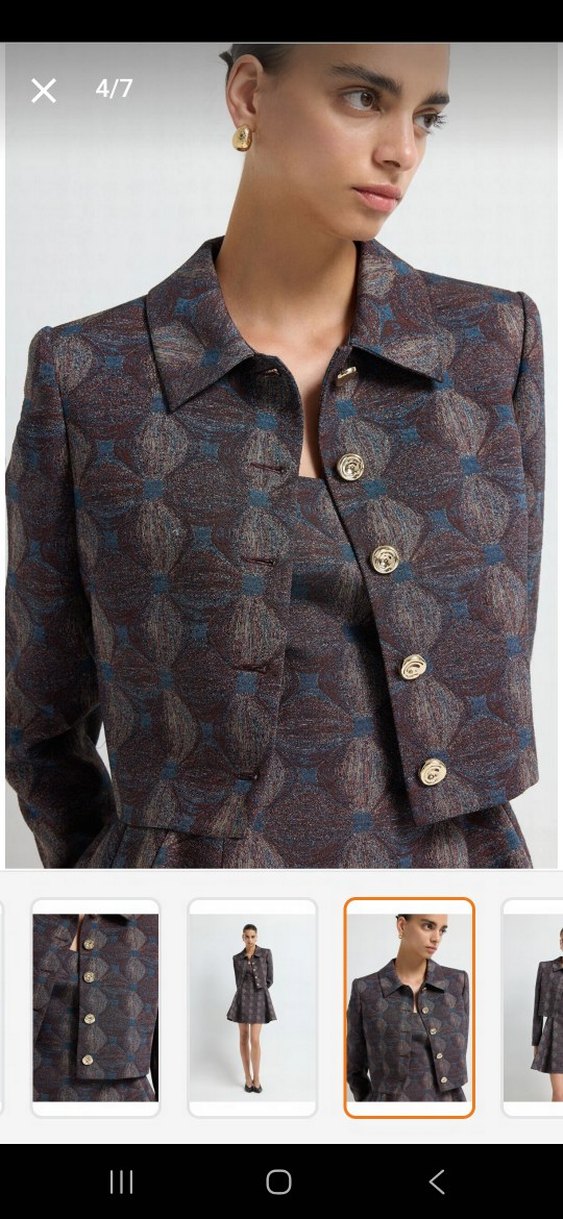 Düğmeli, kısa kesim kadın ceketi, notlu yaka ve baskılı koyu kahverengi desenle tasarlanmıştır. Sentetik kumaştan, uzun kollu ve regular fit modeldir. Ofis kullanımı için uygundur. bedeni xs olan kişilere onerırım cunku bana azcık dar geldi